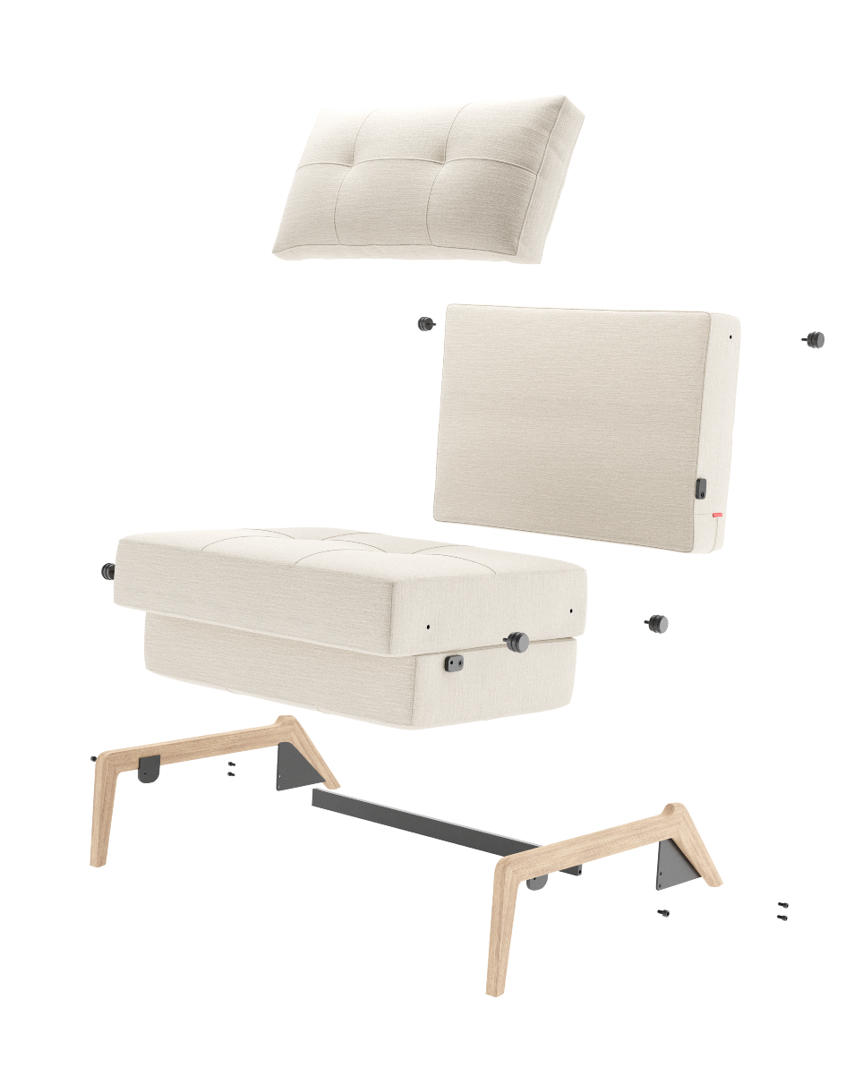 Zeal daybed kombinerer fleksibilitet og kompakt design. De tre justerbare vinger fungerer uafhængigt som armlæn eller hovedstøtter, mens pocket spring-madrassen sikrer optimal komfort til hverdagens behov – hvad enten du sidder, slapper af eller sover. Den passer perfekt i både små og store rum – som fritstående i stuen, langs væggen i gangen eller som gæsteseng.