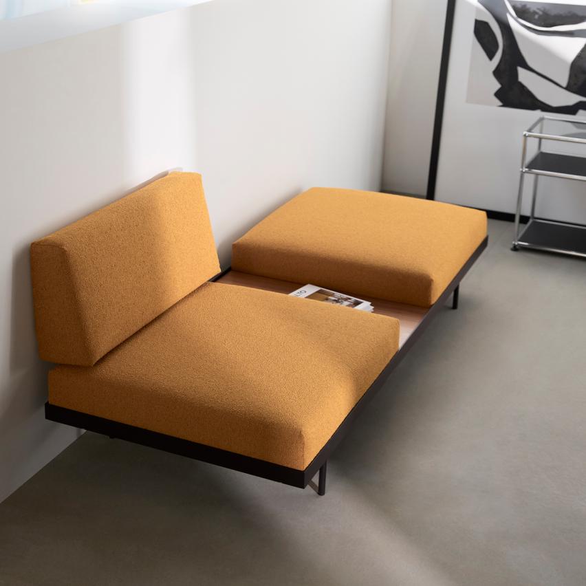 Nolis daybed er et smukt polstret møbel, designet til at sidde, slappe af og lounge. Perfekt som ekstra siddeplads eller liggestol – den kan placeres frit i stuen eller gangen, eller stilles op ad en væg.