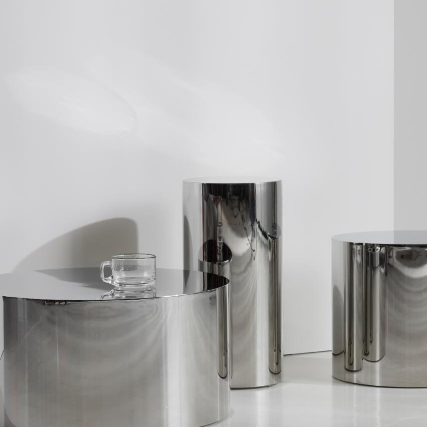 Tin Drum Table-serien forener refleksive overflader med rene geometriske former og skaber et design, der både er markant og sofistikeret.