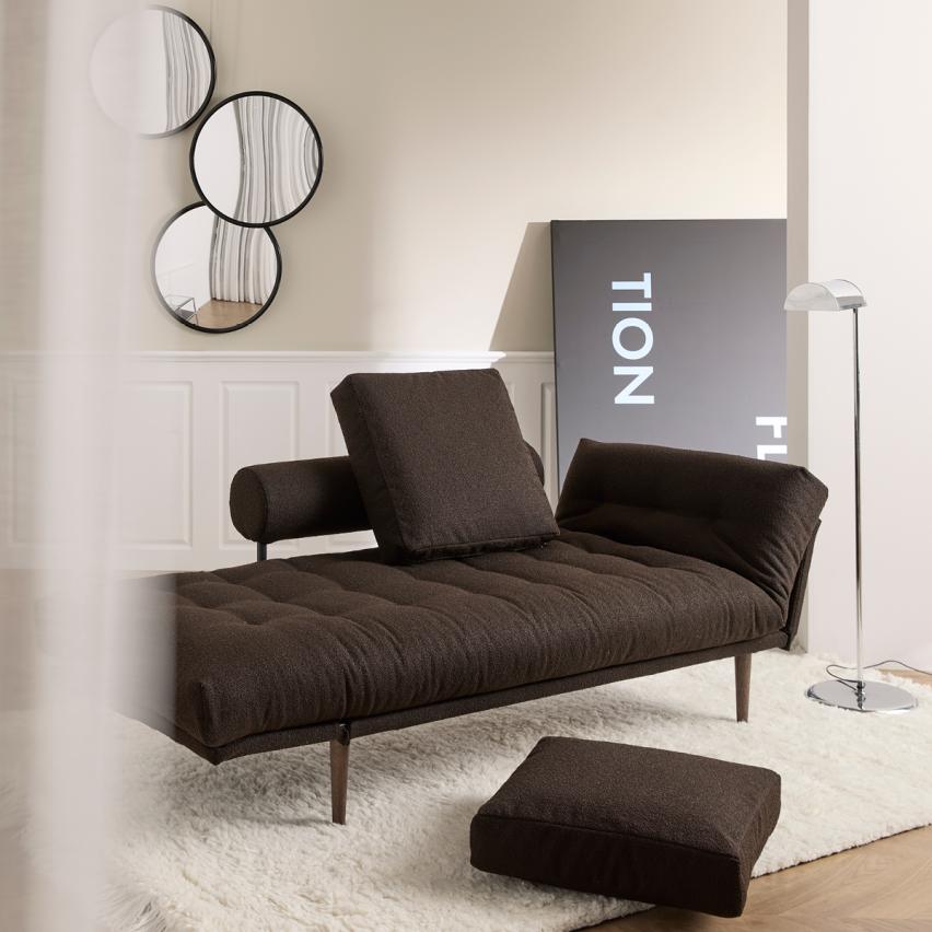 Nolis daybed er et smukt polstret møbel, designet til at sidde, slappe af og lounge. Perfekt som ekstra siddeplads eller liggestol – den kan placeres frit i stuen eller gangen, eller stilles op ad en væg.