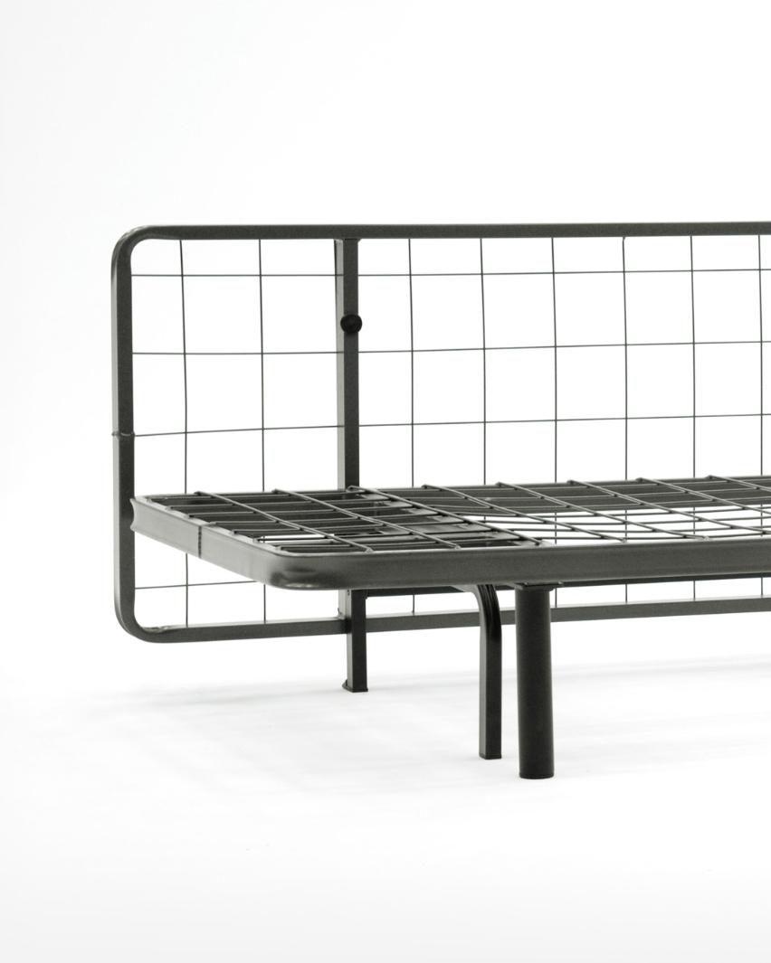 Madrassens inderbetræk er lavet af overskydende stof, og for at sikre nem genanvendelse er den konstrueret uden lynlåse og madrassen fastgøres til stellet med et bånd lavet af stofrester.