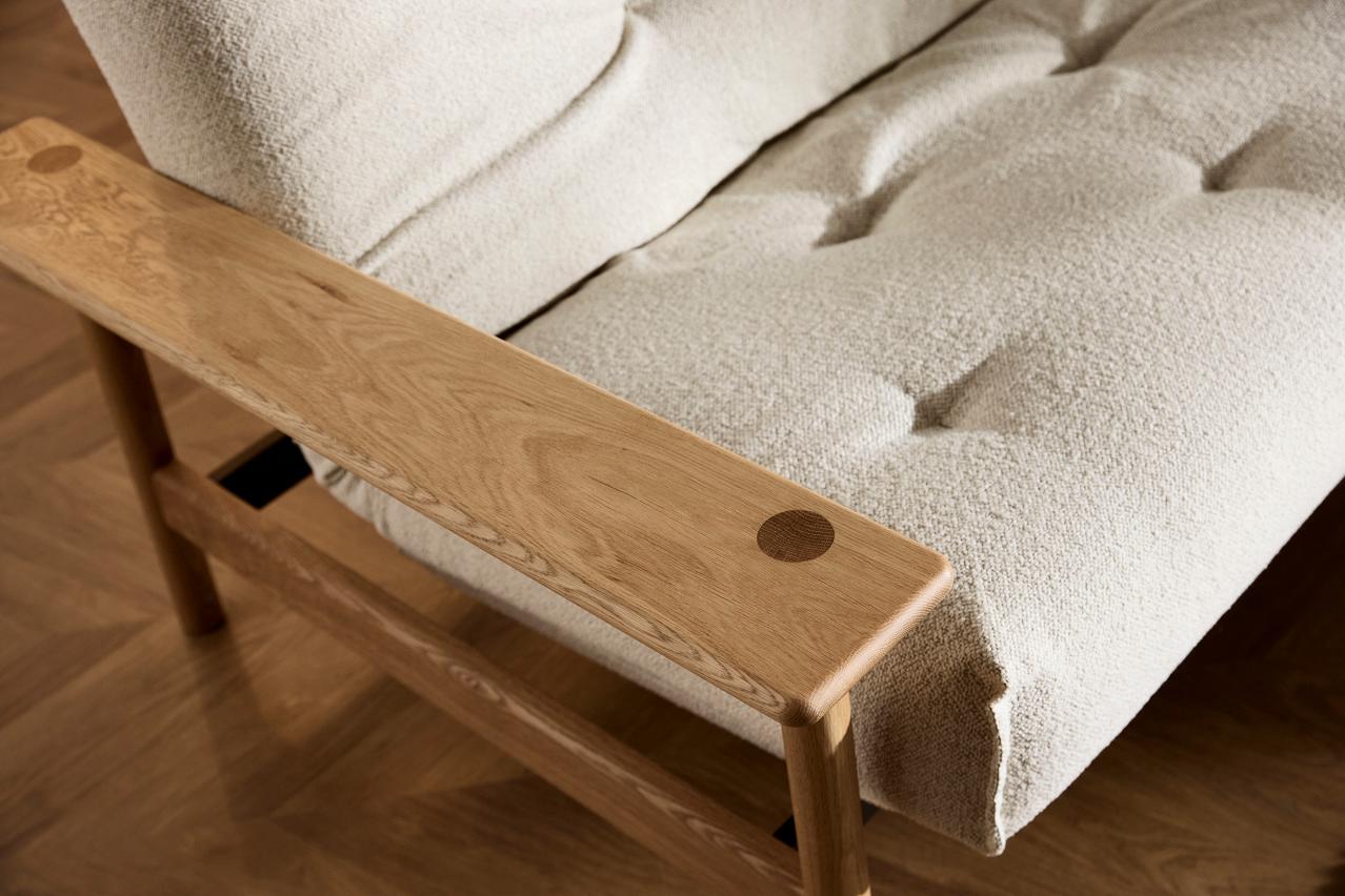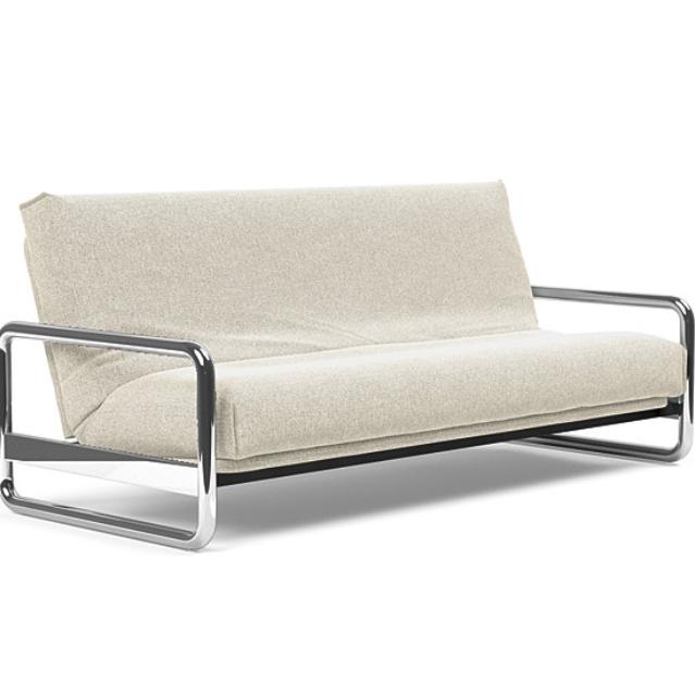 Det grundlæggende designkoncept bag Innovation Livings sortiment af multifunktionelle møbler kombinerer håndlavede madrasser fastgjort til metalrammer med integreret hovedelevation og lamelbund i træ. Resultatet er holdbare og yderst komfortable sovesofaer til både sidde- og liggebrug.